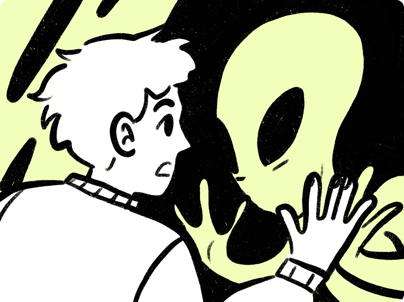 Once, a real—or so I thought—alien started talking to me. He said right out: “Hello. My name is Prot and I’m from planet Capex.” I was so happy I actually woke up. And as I tried to peel the cereal flakes off my face (I’d fallen asleep in my breakfast bowl), I realized it was Granny watching a stupid old movie in the next room.