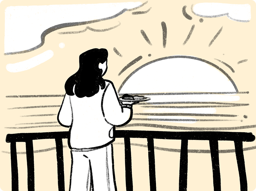 Having prepared a steak with berry sauce,I went out to the balcony to meet the sunset. The taste of the dense piece of meat felt like a juicy indigo color, the color of the coming night. The sauce intoxicated me with a sour-sweet explosion of raspberry and blackberry. And then, confetti of sunset gold scattered in my mouth.