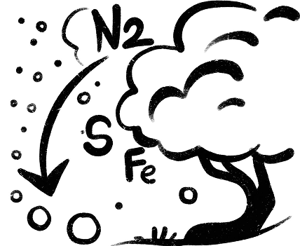 I googled “nitrogen fixation” and was immediately terrified when I saw this: N₂ + 16ATP + 16H₂O + 8e⁻ + 8H⁺ → 2NH₃ + H₂ + 16ADP + 16Pi. For a moment I thought it was some secret code, and “nitrogen fixation” the name of a criminal organization. I nervously called my teenage son over. He laughed and assured me that neither the authorities nor gangsters were coming for me. The “secret code,” it turned out, was simply the chemical equation describing how certain bacteria convert atmospheric nitrogen into ammonia.