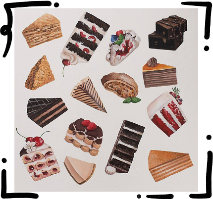 А ещё в этой серии был интерактив: я рисовала торты и предлагала зрителям угадать их названия. Это было так здорово! Я тогда погрузилась в историю десертов: узнала про венский Захер, из-за которого до сих пор спорят две кондитерские, про немецкий «Шварцвальд». Почти все эти торты я попробовала для вдохновения. Даже простые конфетки на картинах выглядят так, что их хочется съесть. Это целый мир, который можно не только увидеть, но и почувствовать пальцами, а иногда, даже и языком.