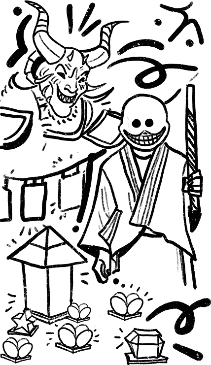 В Японии существует свой собственный аналог Хэллоуина — фестиваль Обон. Он отмечается в период с 13 по 15 августа и тоже связан с приходом душ умерших родственников в мир живых. Японцы чтят этот праздник и считают его хорошей возможностью провести время с близкими — живыми или мёртвыми. Главный символ Обона — японские фонари-тетины, которыми украшают дома, улицы и кладбища. По верованиям именно свет этих фонарей может помочь душам покойных найти дорогу к дому своих близких, а затем без труда вернуться обратно в загробный мир. Помимо фонарей, в каждом доме устанавливается специальный алтарь для подношений с фотографиями родственников и их любимыми блюдами. Во время Обона японцы исполняют традиционный танец Бон-Одори для выражения благодарности предкам за их визит. Для этого устанавливают специальную деревянную башню — ягуру, наверху которой располагаются музыканты или певцы. Вокруг башни устраивают хоровод, в танце можно использовать различные праздничные атрибуты вроде трещоток, вееров, цветов и соломенных шляп.