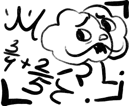 Поэтому, вместо того, чтобы радовать домашних, он проводит вечер в мучительных попытках сложить три четверти с двумя пятыми, с тоской поглядывая на духовку.