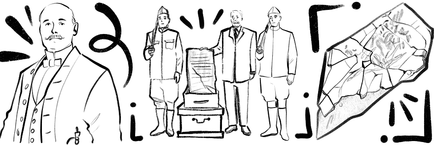 Первый номинант — Чарльз Доусон. В 1912 году он вышел на мировую арену, сжимая в руках потрясающее археологическое открытие. В местечке Пилтдаун (Англия) он отыскал недостающее звено между человеком и обезьяной. И что вы на это скажете, отрицатели теории эволюции? Находка перед вами — совершенный человеческий череп с массивной, как у обезьяны, челюстью.