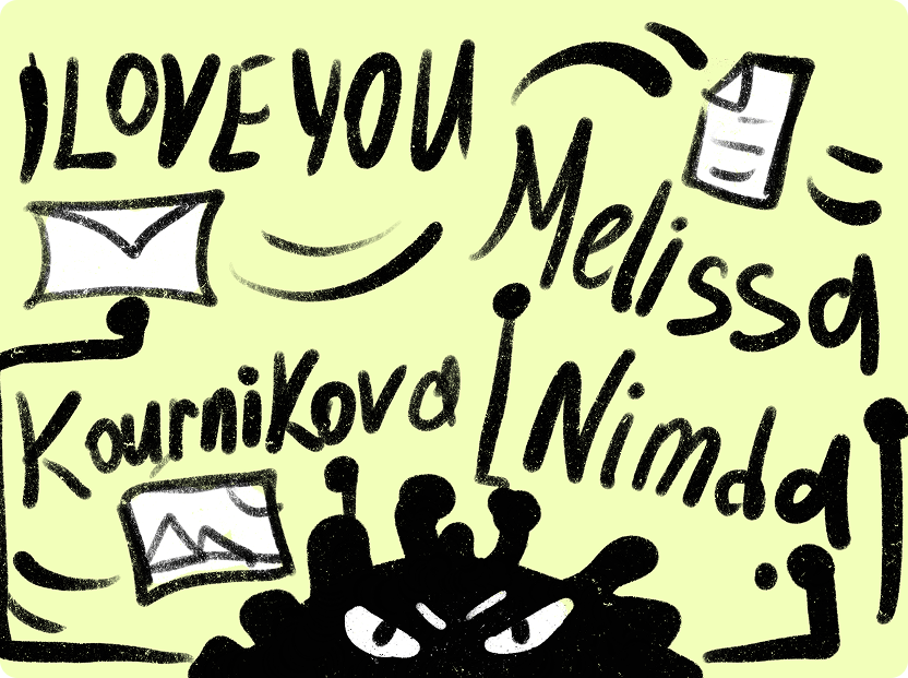 Melissa. 26 марта 1999 года какой-то пользователь из Нью-Джерси запостил в группу «alt.sex» файлик с названием «list.doc.» — обычный вордовский документ внутри которого был список паролей от 80 платных порносайтов. Кто же откажется от халявного порно? Никто и не отказался.